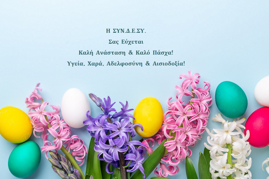 Η Συνδικαλιστική Δημοκρατική Ενωτική Συμμαχία Σας Εύχεται Καλή Ανάσταση & Καλό Πάσχα!Υγεία, Χαρά, Αδελφοσύνη & Αισιοδοξία!Καλή Ανάσταση & Καλό Πάσχα!Αφήστε το σχόλιό σας Ακύρωση απάντησηςΗ ηλ. διεύθυνση σας δεν δημοσιεύεται. Τα υποχρεωτικά πεδία σημειώνονται με *Όνομα * Email * Ιστότοπος Σχόλιο * Αποθήκευσε το όνομά μου, email, και τον ιστότοπο μου σε αυτόν τον πλοηγό για την επόμενη φορά που θα σχολιάσω. προηγούμενοΑπρόκλητη και Απαράδεκτη Υβριστική ΕπίθεσηεπόμενοΠαράνομες πράξεις και παραλείψεις στο Κωνσταντοπούλειο Ευγηρείο